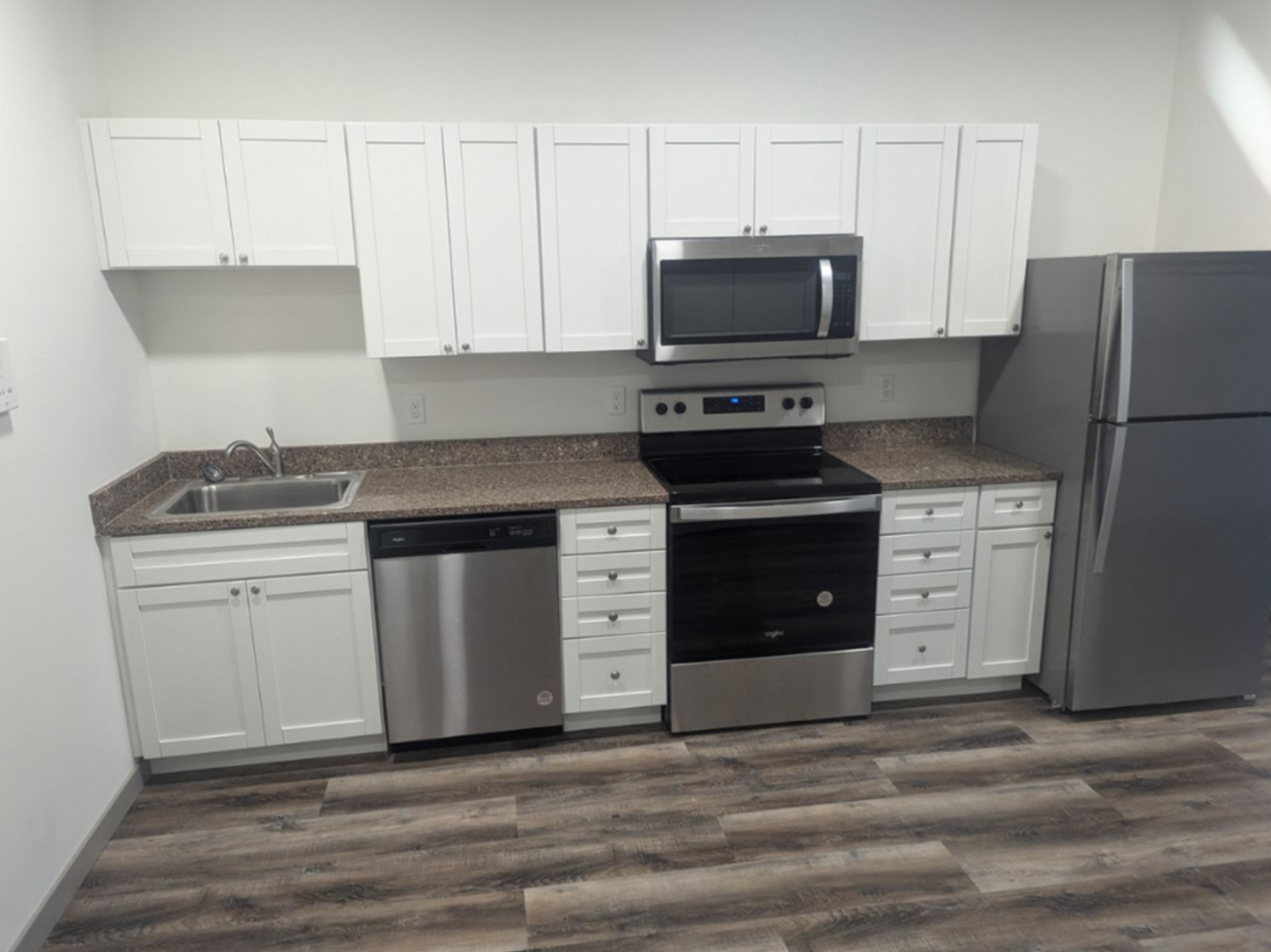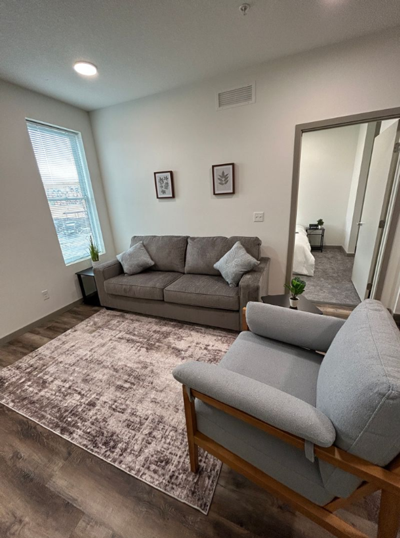This furnished one-bedroom apartment at 103 W Lyon Street, features an open-concept layout with large windows, stainless steel appliances, quartz countertops, and luxury vinyl plank flooring throughout. Located in the Marshall community, the building offers convenient access to shopping, dining, parks, and local services in the heart of Marshall.
